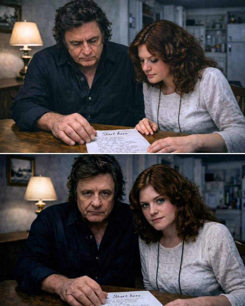 Years after the spotlight had already defined Johnny Cash, the moment that mattered most happened quietly. One evening, he slid a folded paper across the table to Rosanne Cash. No speech. No buildup. Just a list — 100 country songs.