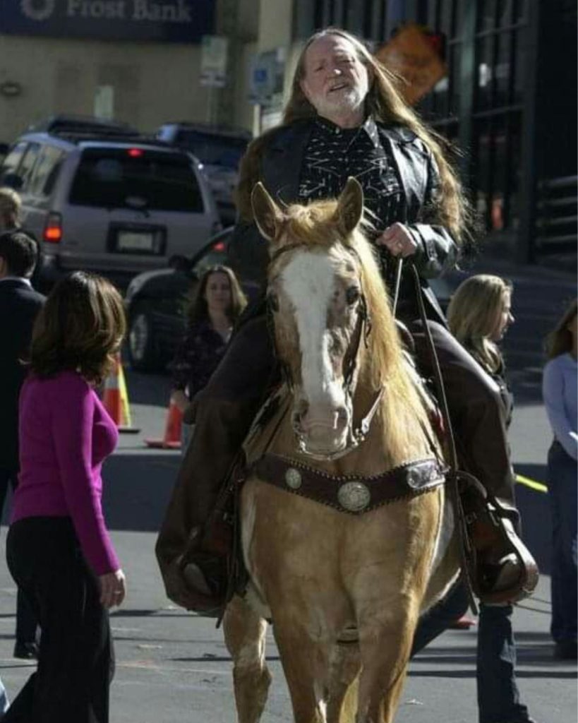 That brief ride through downtown felt like something out of his songs — part rebellion, part serenity, all heart. Just a man, his horse, and the road beneath him. It reminded people of a time when freedom wasn’t measured by speed but by silence — by the slow rhythm of hooves, not engines.