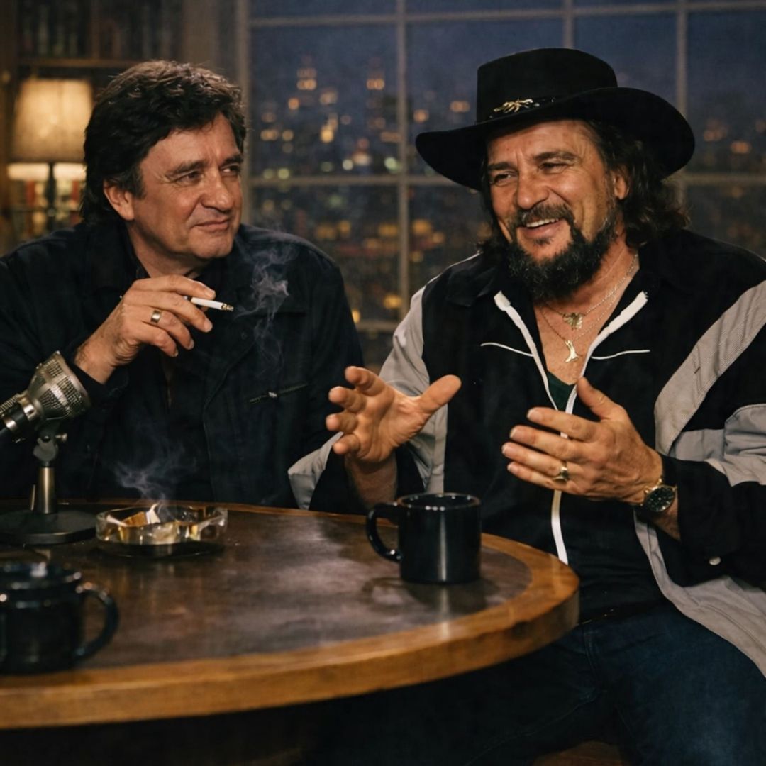 The studio lights didn’t feel like a stage that night — more like a quiet room where two men decided to stop performing. Johnny Cash and Waylon Jennings weren’t there to reinforce their outlaw reputations. They spoke slower, more carefully, choosing honesty over myth. The audience leaned in, sensing that this wasn’t entertainment; it was confession.
